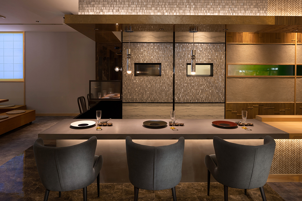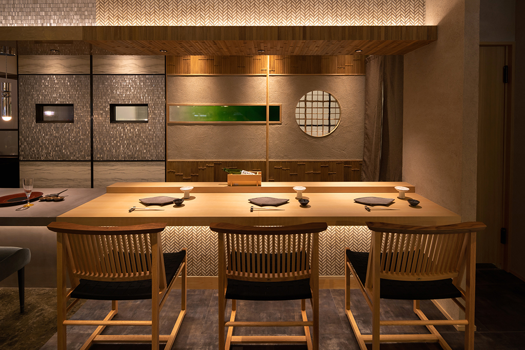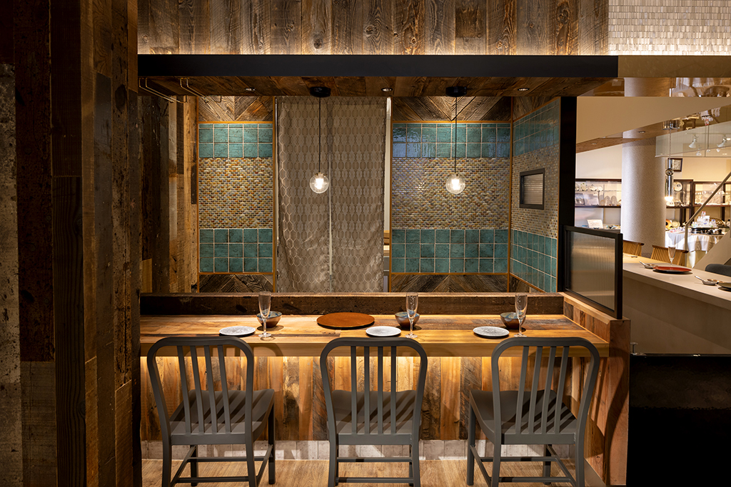 それぞれのカウンターと隣り合う「境界」のマテリアルを試行錯誤し、
